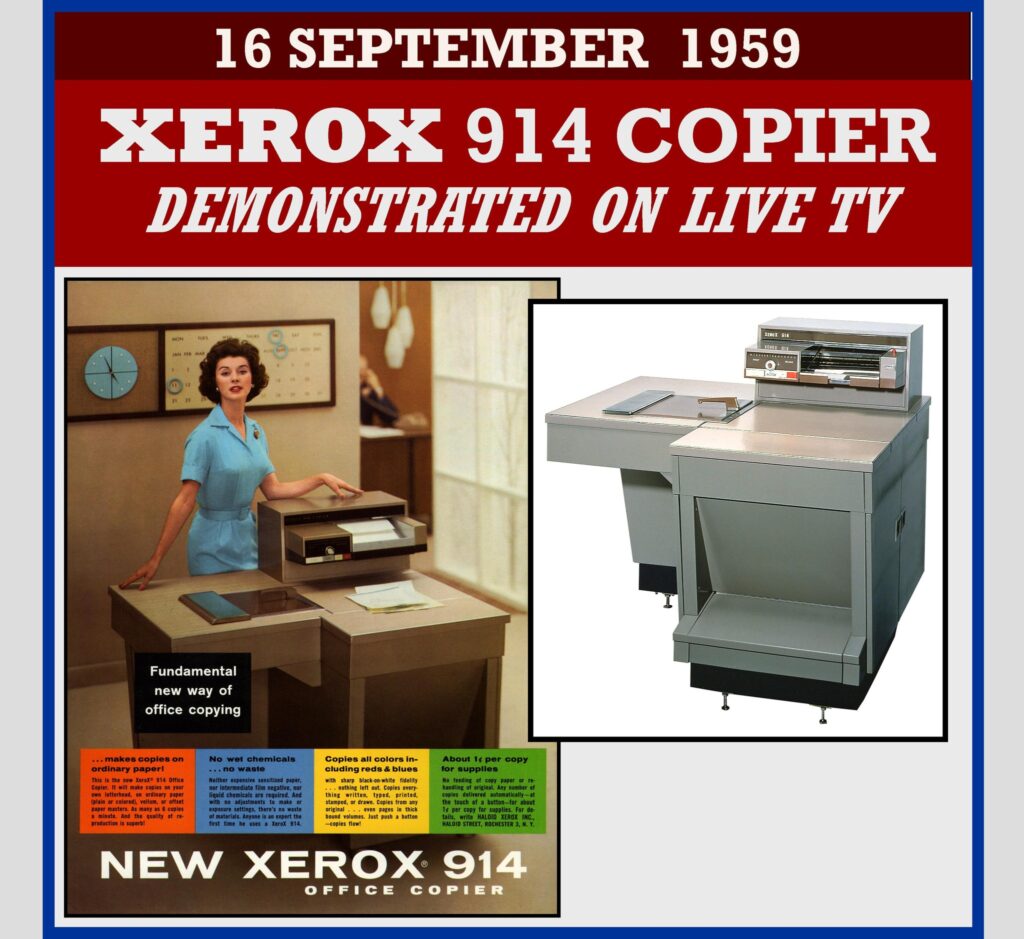 The Xerox 914 was the first successful commercial plain paper copier which in 1959 revolutionized the document-copying industry. The culmination