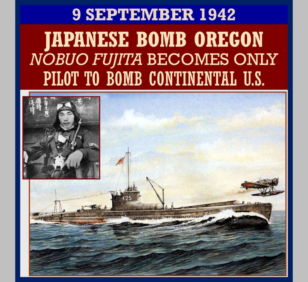 1942 â A Japanese floatplane drops incendiary bombs on an Oregon state forest-the first and only attack on the U.S.