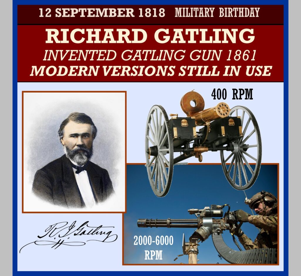 The Gatling gun is a rapid-firing multiple-barrel firearm invented in 1861 by Richard Jordan Gatling. It is an early machine