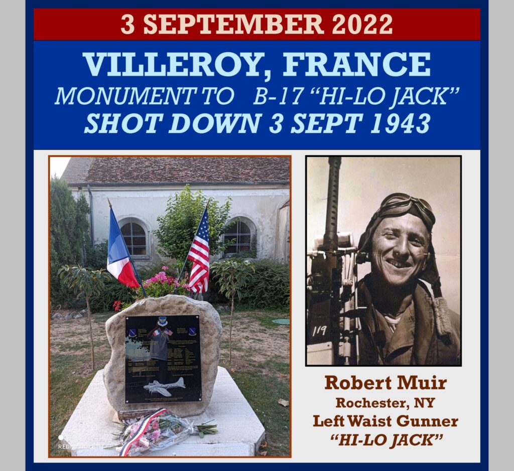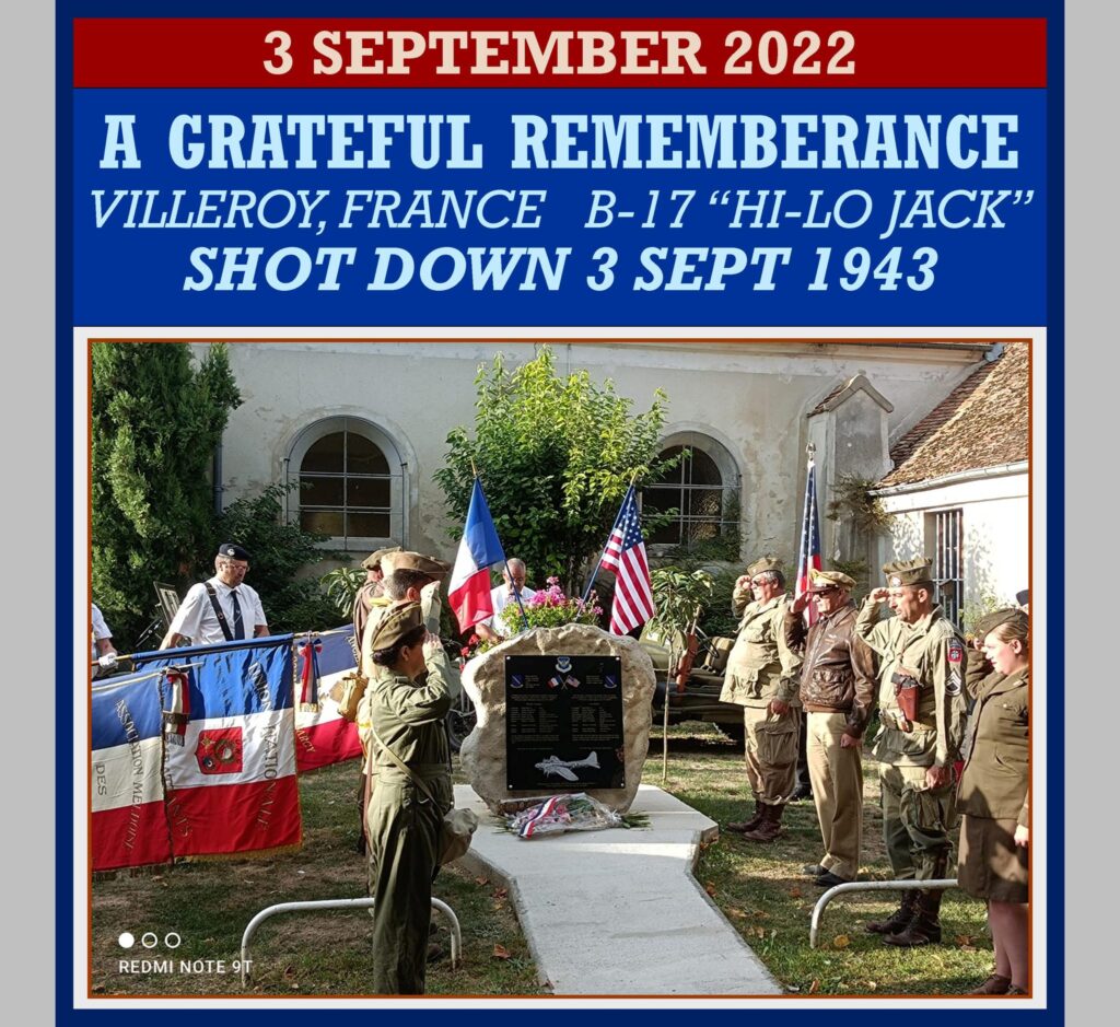 On 3 September 1943 a B-17 heavy bomber was shot down in France between the towns of Villeroy and Trilbardou.