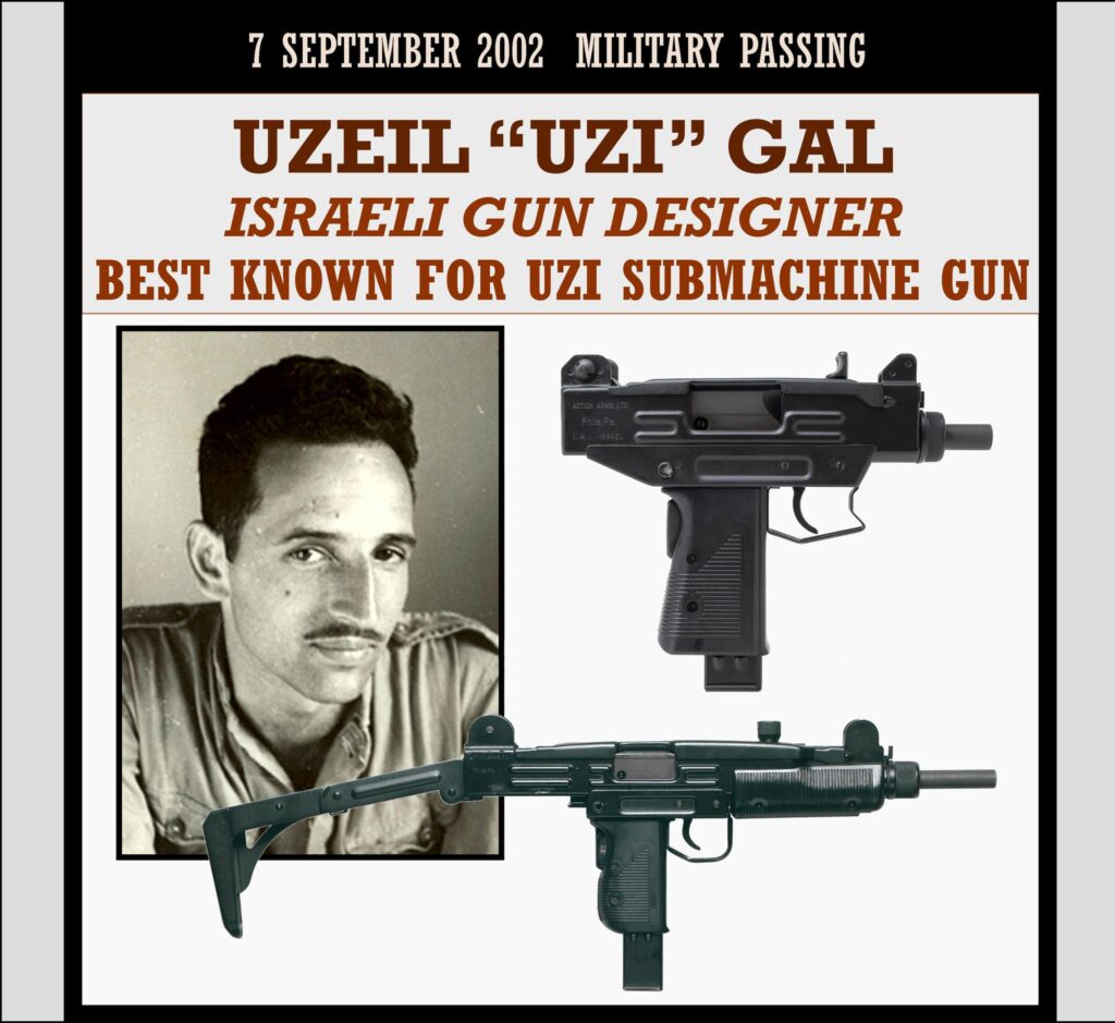 Uziel “Uzi” Gal (Hebrew: ×¢××××× “×¢×××” ××, born Gotthard Glas; 15 December 1923 â 7 September 2002) was an Israeli