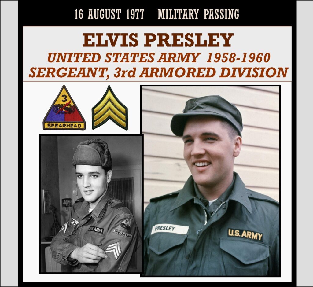 Elvis Aron Presley entered the United States Army at Memphis, Tennessee, on March 24, 1958, and then spent three days