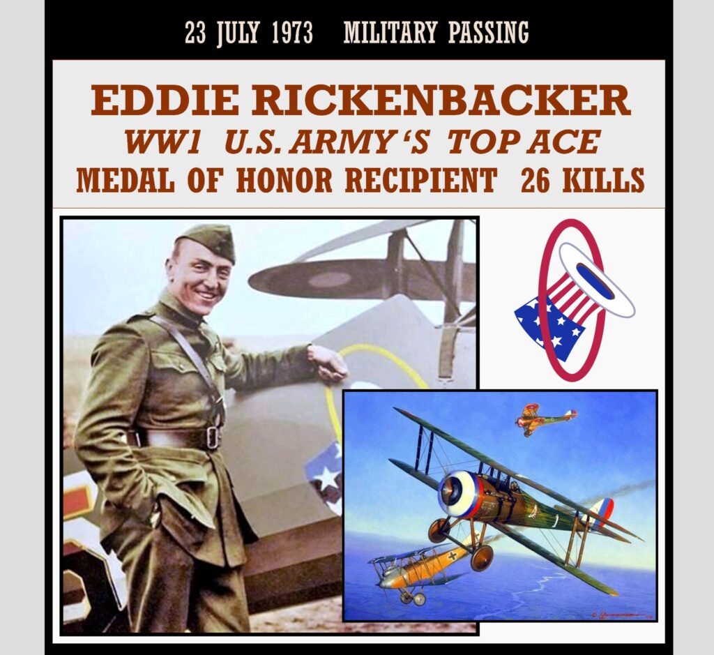 Edward Vernon Rickenbacker (October 8, 1890 â July 23, 1973) was an American fighter ace in World War I, and