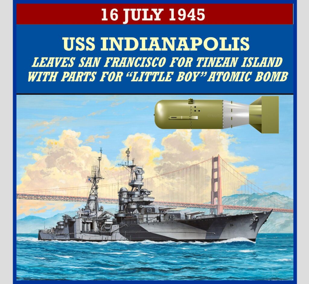 16 July 1945, the heavy cruiser USS Indianapolis leaves San Francisco with parts for the atomic bomb “Little Boy” bound […]