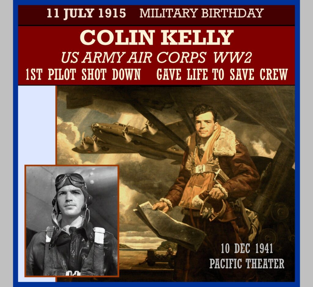 Colin Purdie Kelly Jr. (July 11, 1915 â December 10, 1941) was a World War II B-17 Flying Fortress pilot