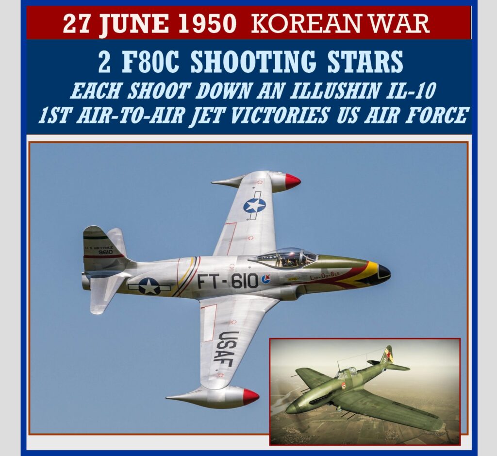 1950 â A patrol of F80C Shooting Stars from the 35th Fighter-Bomber Squadron intercepted eight Ilyushin IL-10 fighters over Kimpo.