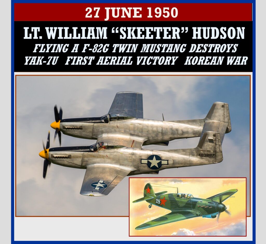 1950 â Flying a F-82G Twin Mustang in a defensive mission over Kimpo Airfield, Lieutenant William G. âSkeeterâ Hudson, 68th