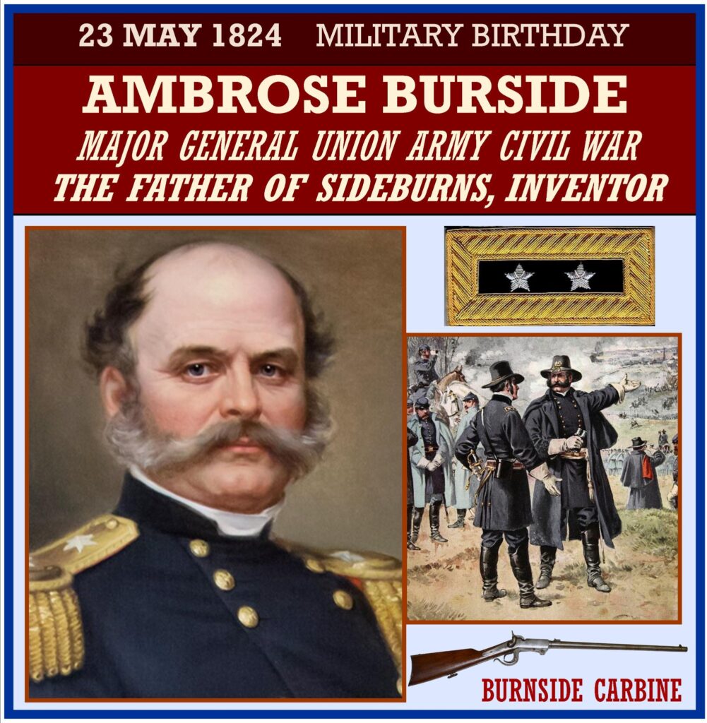 Ambrose Everett Burnside (May 23, 1824 â September 13, 1881) was a U.S. military officer, railroad executive, inventor and politician