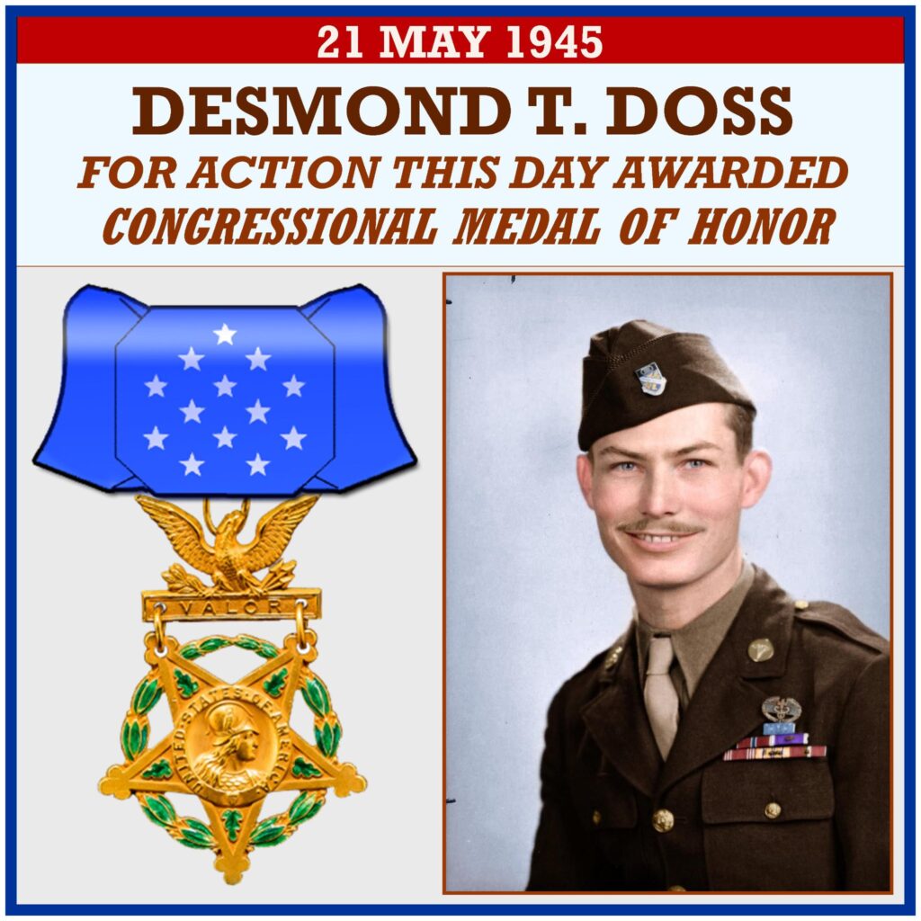 Citation: Private First Class Desmond T. Doss, United States Army, Medical Detachment, 307th Infantry, 77th Infantry Division. Near Urasoe-Mura, Okinawa,