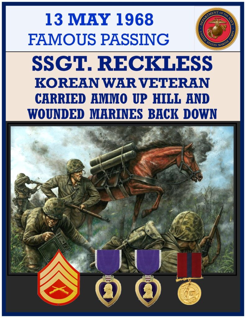 Staff Sergeant Reckless (c. 1948 â May 13, 1968), a decorated war horse who held official rank in the United