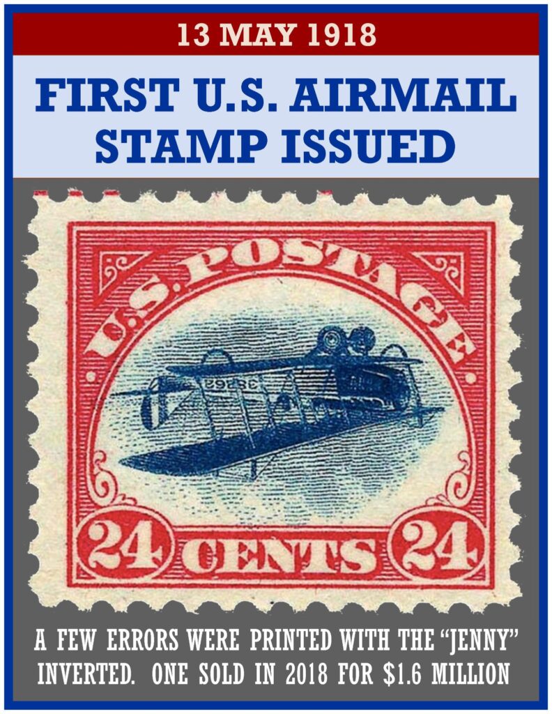 The first airmail stamps were issued in 1918. The U.S. Airmail Service was born that year on 13 May 1918,