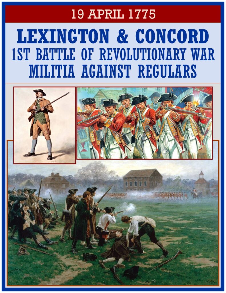 1775 â At about 5 a.m., 700 British troops, on a mission to capture Patriot leaders and seize a Patriot