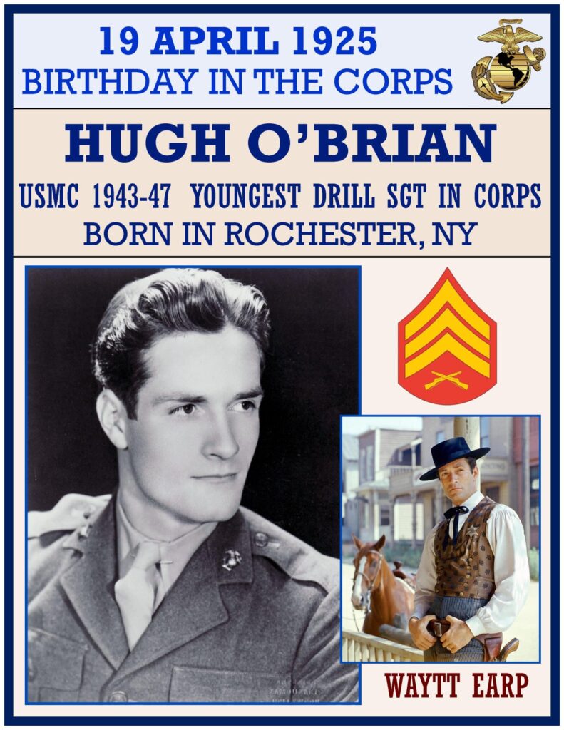 Hugh O’Brian (born Hugh Charles Krampe in Rochester, NY, April 19, 1925 â September 5, 2016) was an American actor