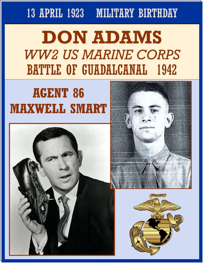 1923 Don Adams (Donald James Yarmy) Born April 13, 1923 d. 2005 American actor. TV: Get Smart (1965-70, Agent 86,