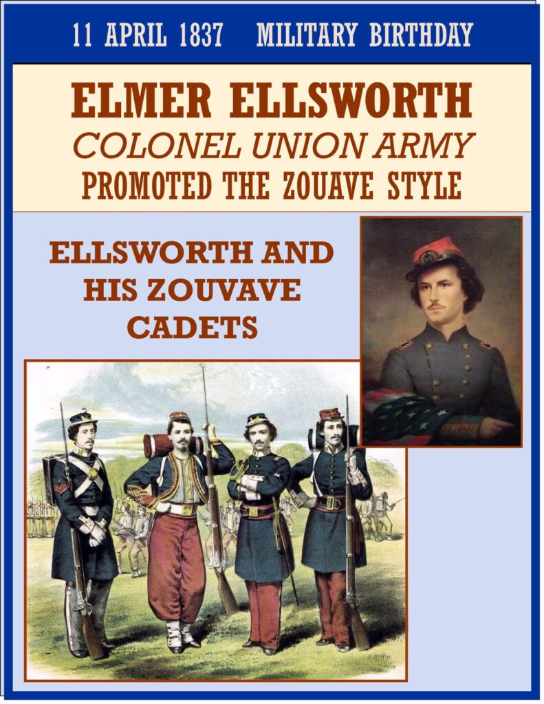 Elmer Ephraim Ellsworth (April 11, 1837 â May 24, 1861) was a United States Army officer and law clerk who