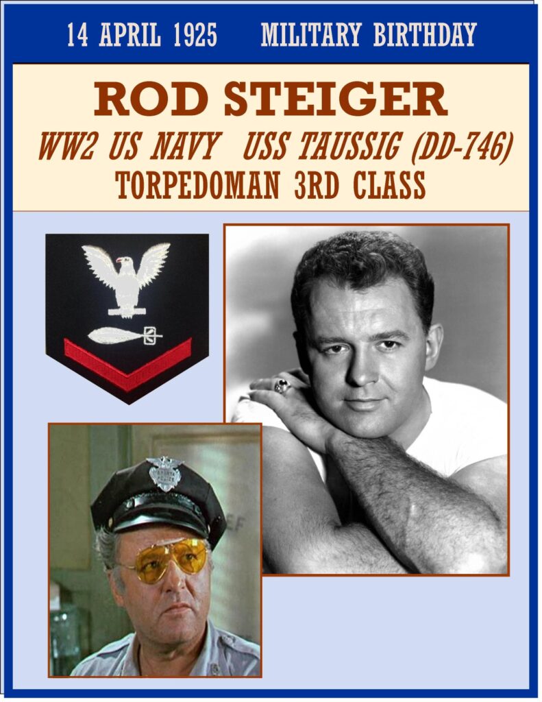 Rodney Stephen Steiger (April 14, 1925 â July 9, 2002)He enlisted on May 11, 1942, and received his training at