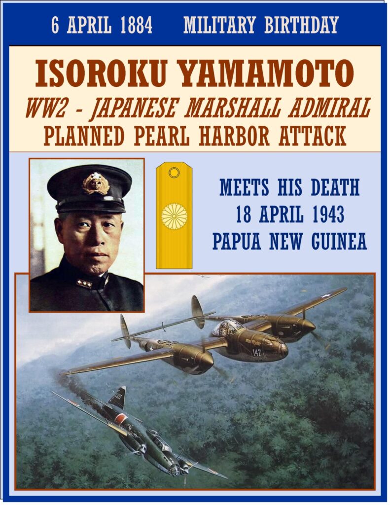 Isoroku Yamamoto (å±±æ¬ äºåå , Yamamoto Isoroku, April 4, 1884 â April 18, 1943) was a Japanese Marshal Admiral of the