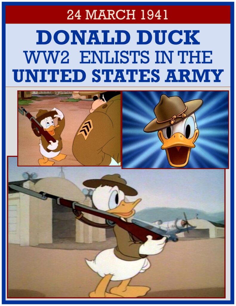 Donald Duck was officially enlisted in the United States Army during World War II, during which time he starred in