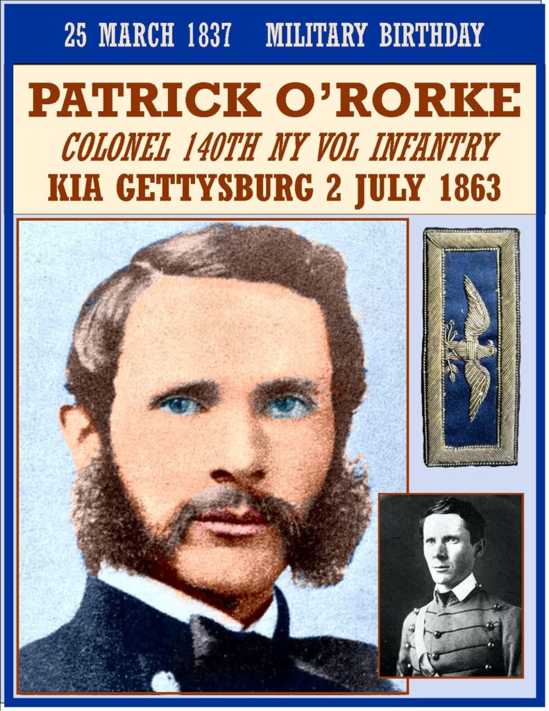 Patrick Henry “Paddy” O’Rorke (March 25, 1837 â July 2, 1863) was born in County Cavan, Ireland on March 25,