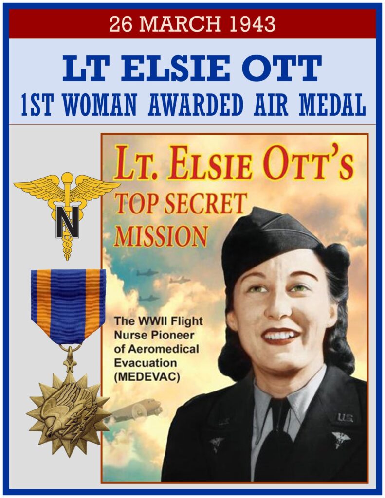Second Lieutenant Elsie Ott (1913â2006) was the first woman to receive the United States Air Medal. She was awarded this
