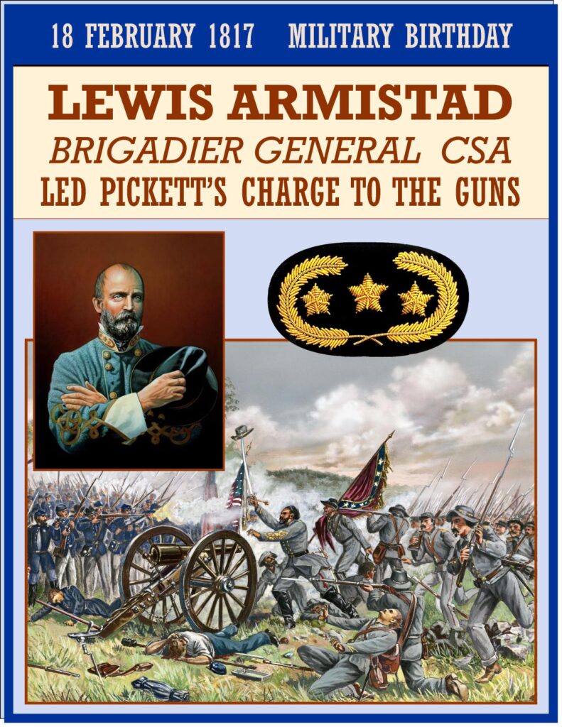 Lewis Addison Armistead (February 18, 1817 â July 5, 1863), born in New Bern, North Carolina, was a career United