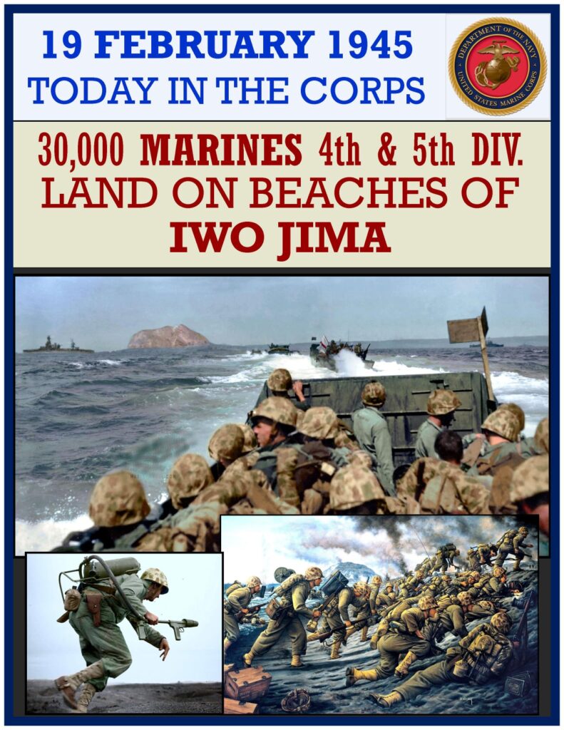 The Fourth and Fifth Marines, commanded by Lieutenant General Holland M. Smith, USMC, landed on Iwo Jima on February 19.