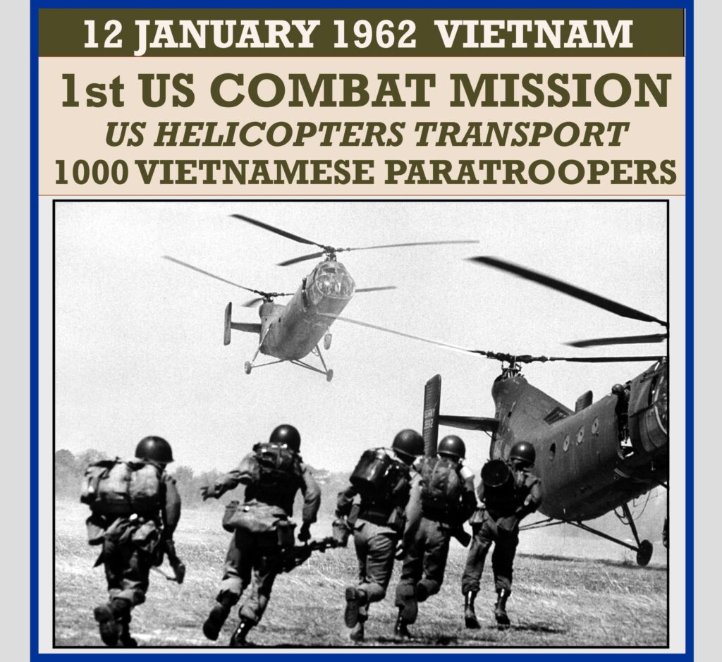 1962 â Operation Chopper, the first American combat mission in the Vietnam War, takes place. In December 1961, the USNS