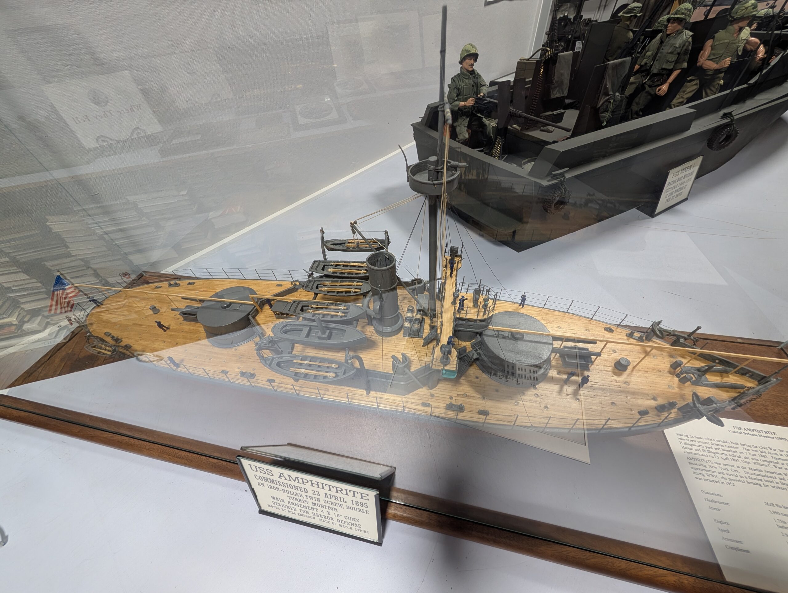 Another rendering of the USS Amphitrite, constructed from matchsticks by Bill Emerson, emphasizes the diverse artistry in model building while documenting this important class of vessel.