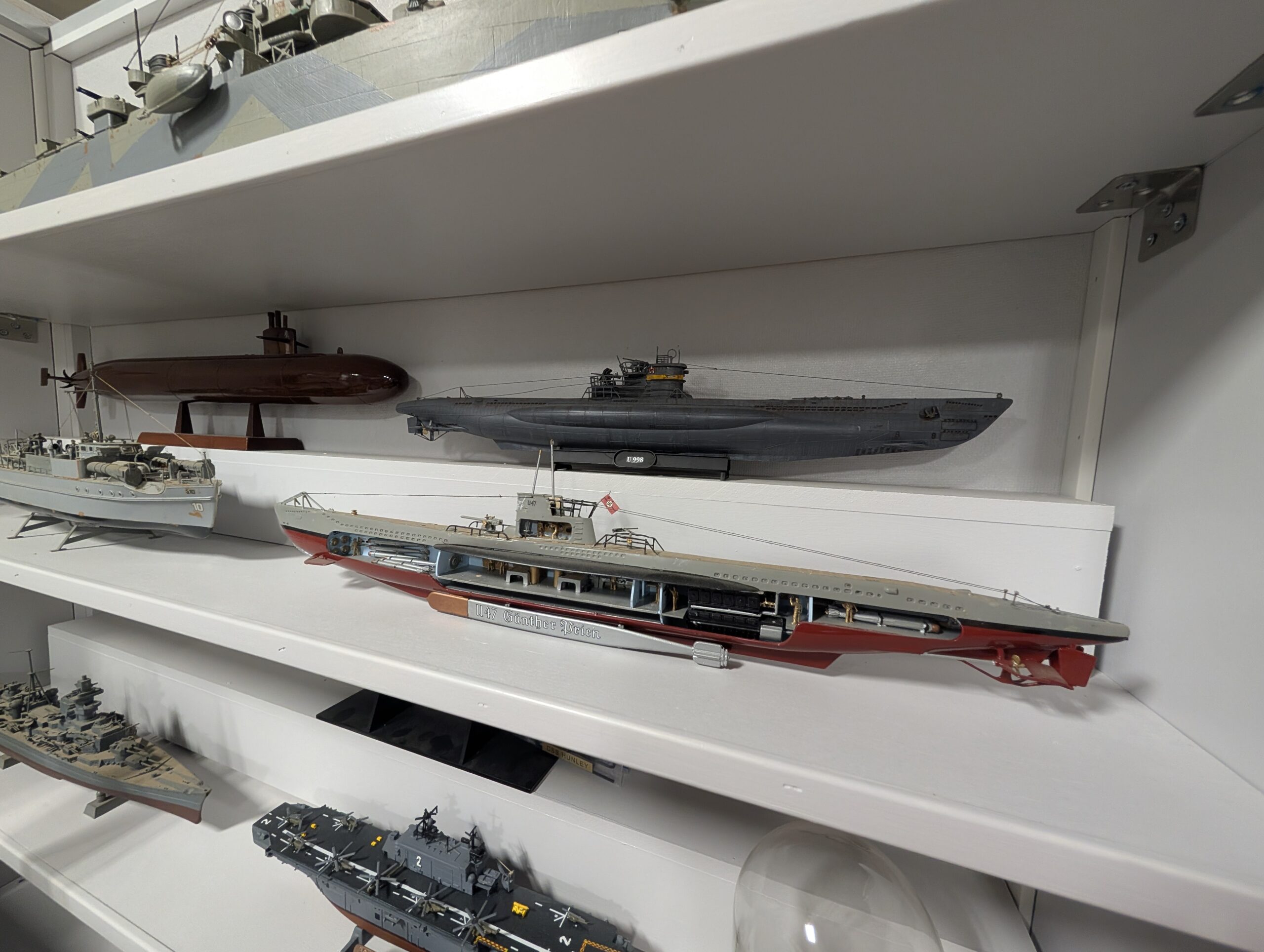 Submarine warfare, epitomized by World War II German U-boats, is also featured, including a cutaway model of U-47 ‘Günther Prien’, illustrating the stealth and strategic importance of underwater vessels.