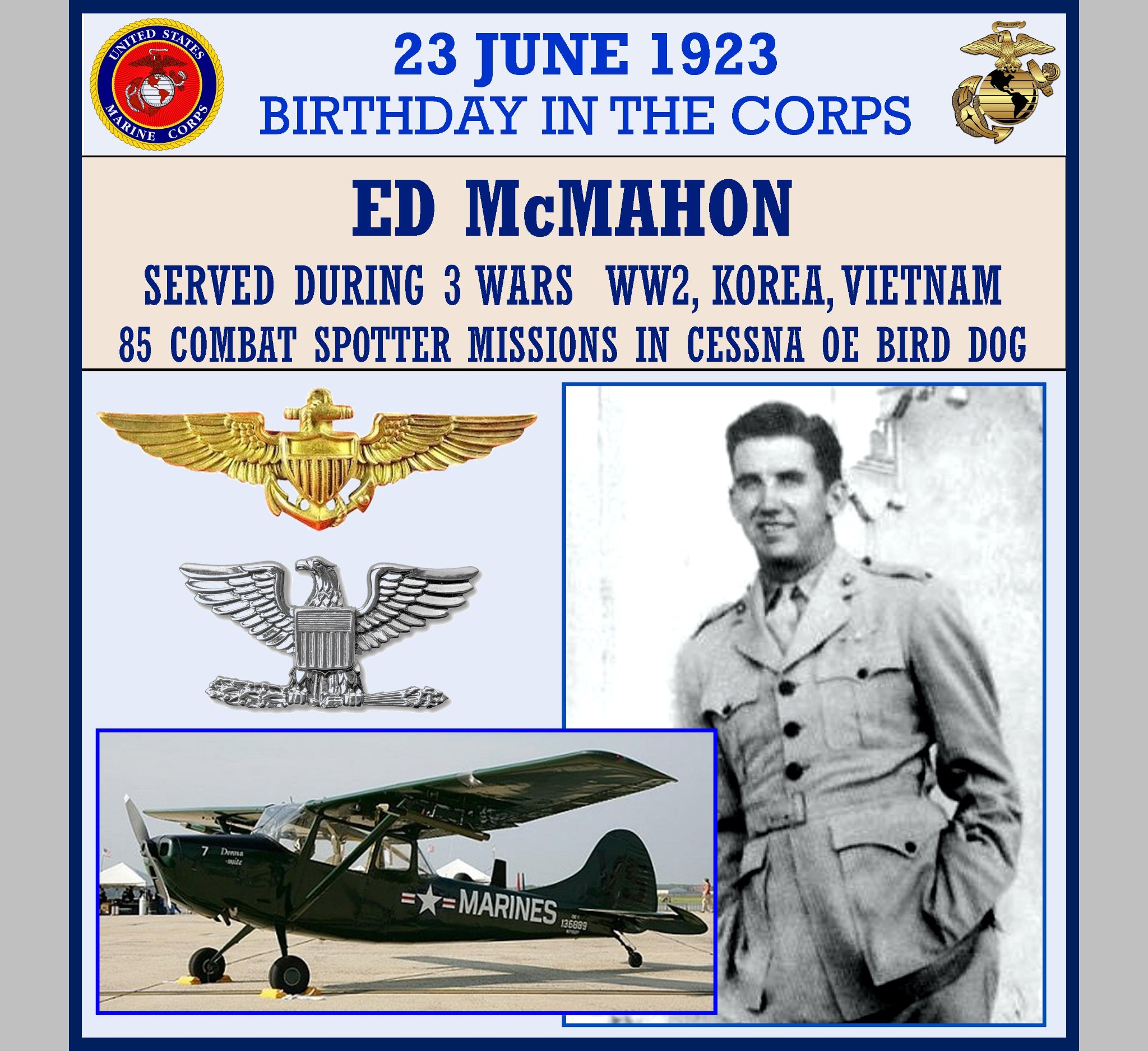 After McMahon graduated from Catholic University, he got a job in television in Philadelphia. In two years, he had become Philadelphia’s top TV personality. In 1952, McMahon got his big break when he was offered a job in New York with CBS; however, he was recalled into the Marine Corps due to the Korean War. After several months of training at Miami and El Toro, McMahon arrived in Korea in February 1953. He flew 85 artillery-spotting missions in the Cessna OE Bird Dog before returning home in September 1953. McMahon returned to television in Philadelphia for several years. In 1958, he was hired as the announcer for Johnny Carson’s Who Do You Trust? In 1962, Johnny Carson took over as host of The Tonight Show and took McMahon along as his announcer and sidekick. Carson and McMahon became an institution and remained on The Tonight Show for 6,583 programs over a 30-year period. Since retiring from The Tonight Show, McMahon has worked on several other TV shows and served as spokesman for various companies and charities. McMahon remained active in the Marine Reserves retiring as a full colonel in 1966.