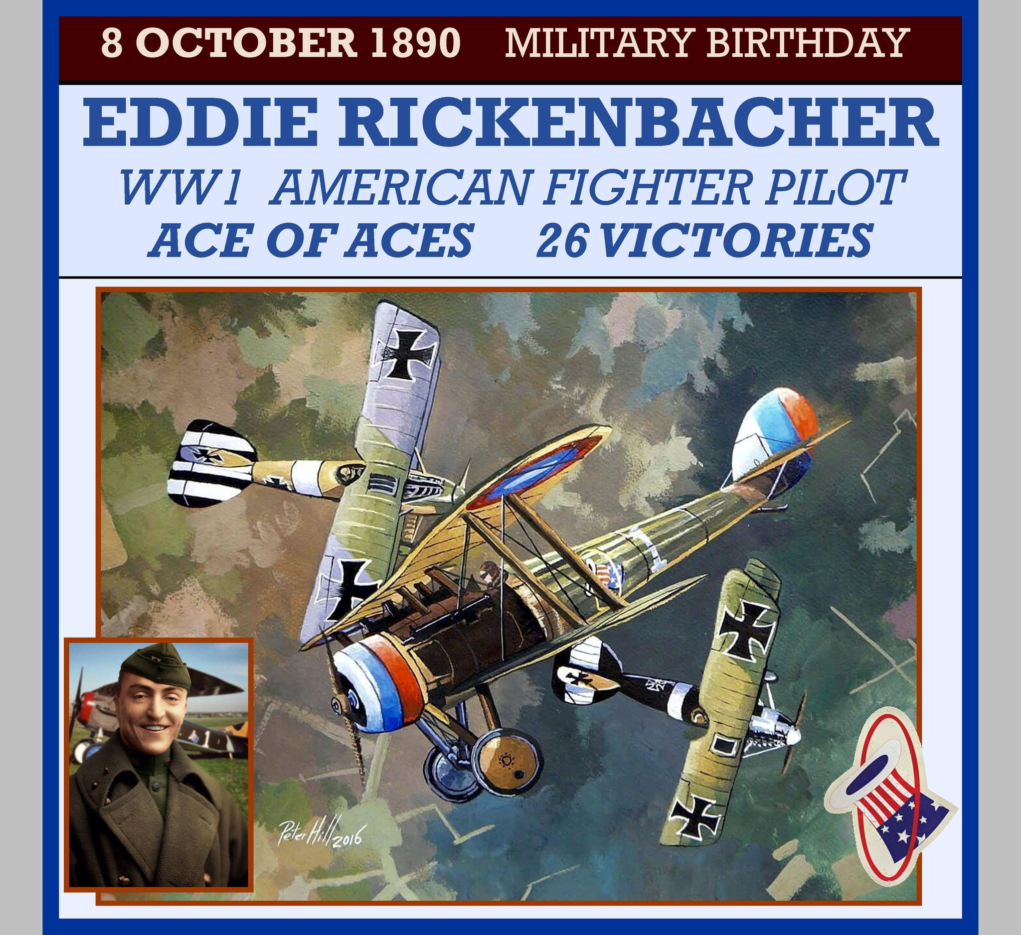 Edward Vernon Rickenbacker (October 8, 1890 â July 23, 1973) was an American fighter ace in World War I and a Medal of Honor recipient. With 26 aerial victories, he was the United States’ most successful fighter ace in the war and is considered to have received the most awards for valor by an American during the war. He was also a race car driver and automotive designer, a government consultant in military matters and a pioneer in air transportation, particularly as the long-time head of Eastern Air Lines.