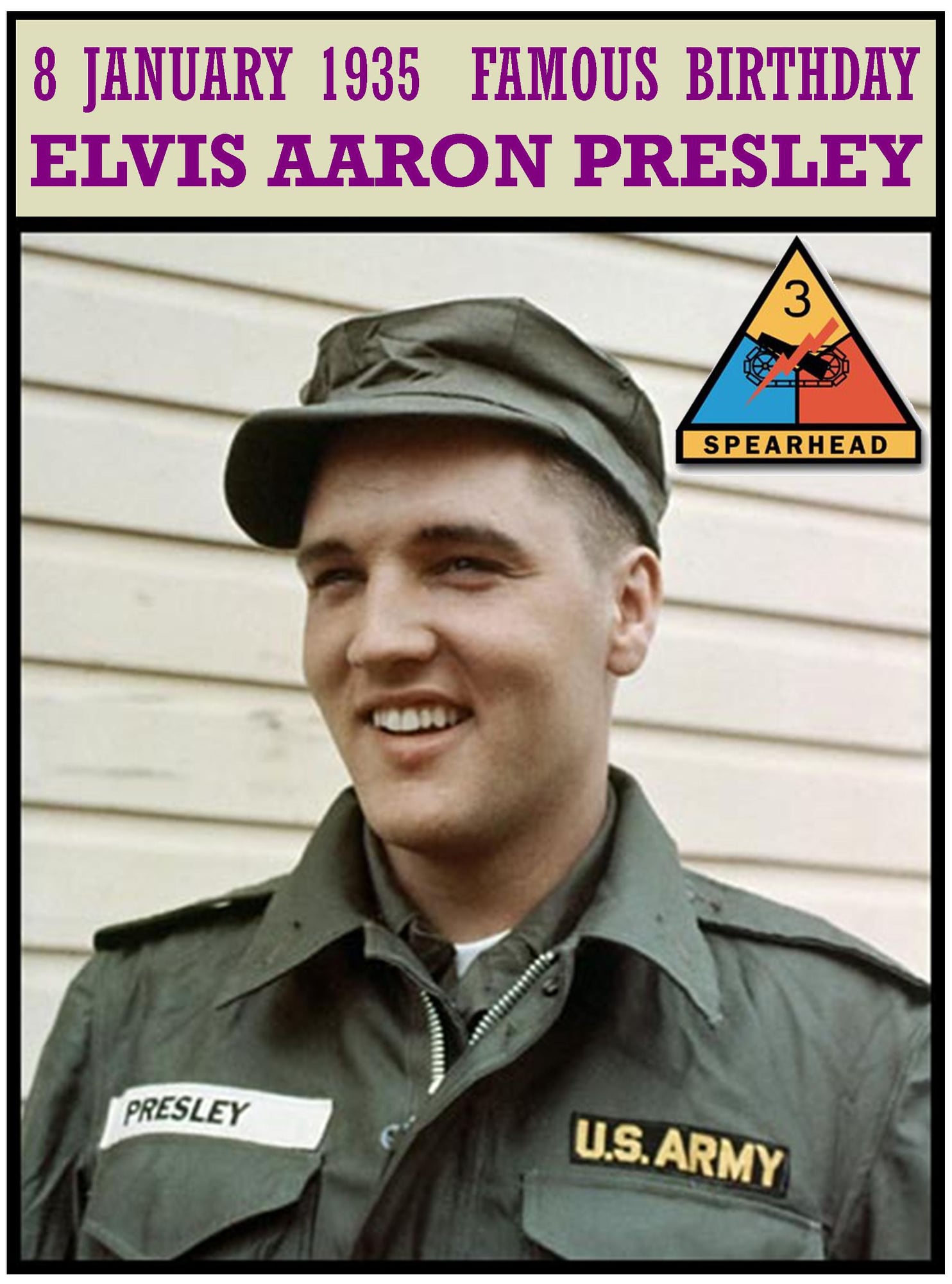 Elvis Aron Presley entered the United States Army at Memphis, Tennessee, on March 24, 1958, and then spent three days at the Fort Chaffee, Arkansas, Reception Station. He left active duty at Fort Dix, New Jersey, on March 5, 1960, and received his discharge from the Army Reserve on March 23, 1964. During his active military career Elvis served as a member of two different armor battalions. Between March 28 and September 17, 1958, he belonged to Company A, 2d Medium Tank Battalion, 37th Armor, stationed at Fort Hood, Texas. During this assignment he completed basic and advanced military training. Elvisâs overseas service took place in Germany from October 1, 1958, until March 2, 1960, as a member of the 1st Medium Tank Battalion, 32d Armor. For the first five days of that period he belonged to Company D of the battalion, and thereafter to the battalion’s Headquarters Company at Friedberg. While in Germany Elvis wore the shoulder sleeve insignia of the 3d Armored Division. rochestermilitary.com