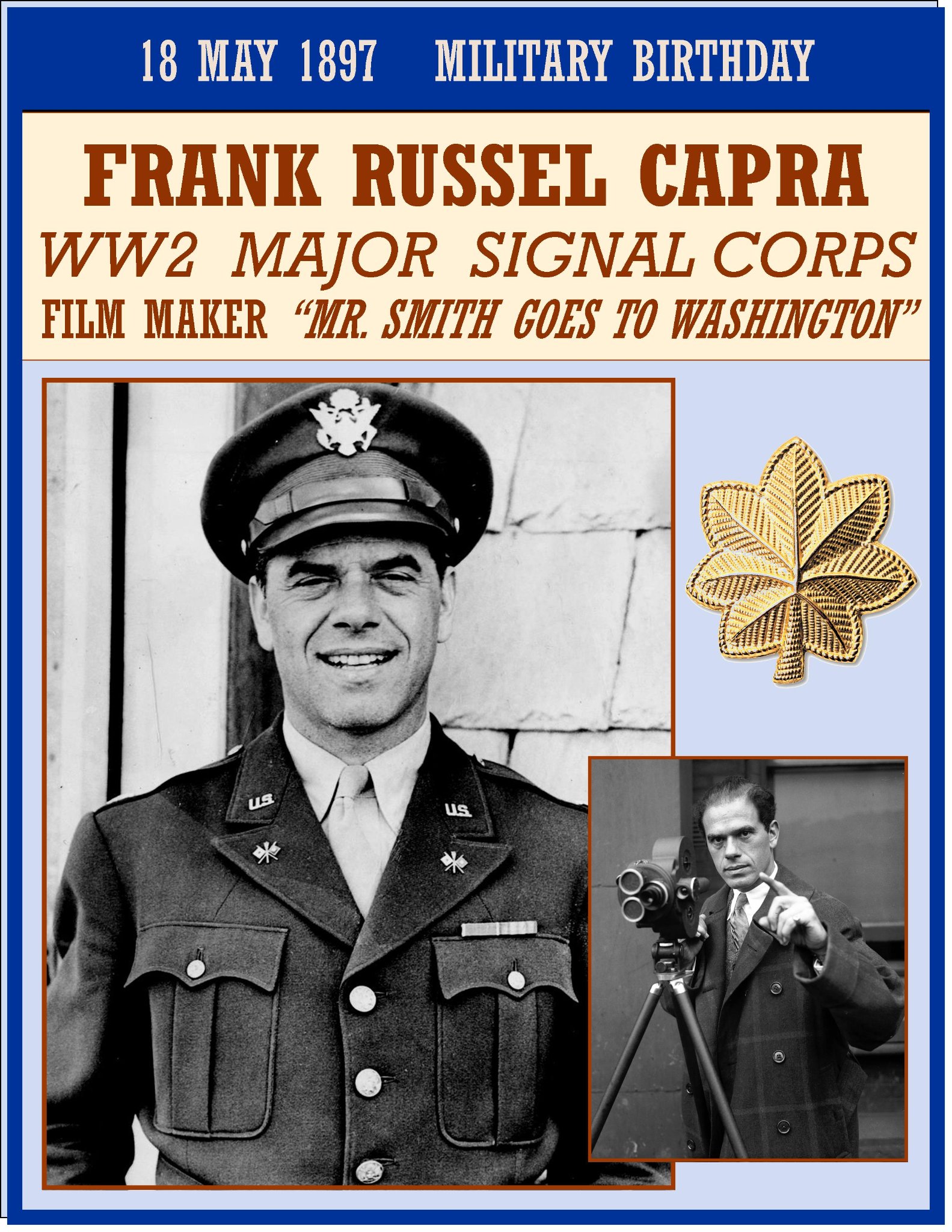 Capra quickly rose to the rank of major and served under Chief of Staff George C. Marshall, who was later awarded a Nobel Peace Prize for his âMarshall Plan.â Marshall wanted to create a series of documentary propaganda films for American soldiers. He wanted the films to be innovative and more objective than most of the propaganda films of the time, and Capra proved to be the ideal man for the job.