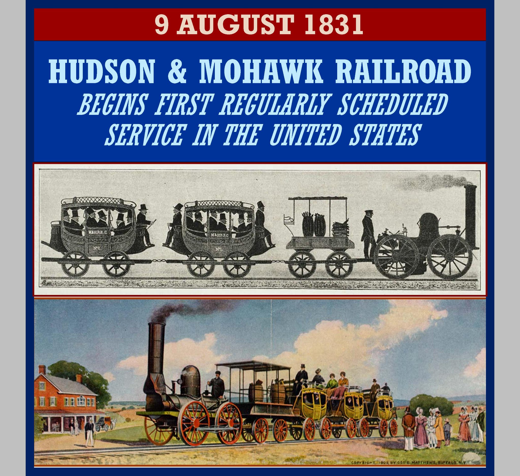 In 1831, the first successful steam railroad running regularly scheduled service in the 11 miles between Albany and Schenectady (the Mohawk and Hudson Rail Road, later to become part of the mighty New York Central System).