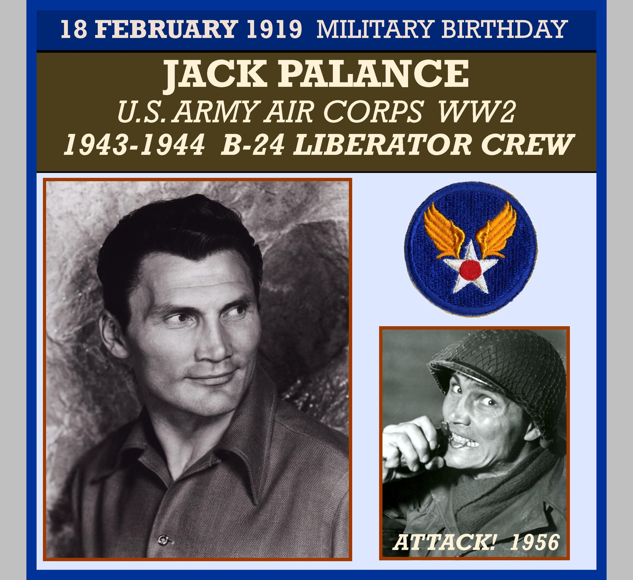 With the outbreak of World War II, Palance’s athletic career ended, and his military career as a member of the United States Army Air Forces began. Palance’s face, which took many beatings in the boxing ring, was said to have become disfigured while bailing out of a burning B-24 Liberator bomber during a training flight over Southern Arizona (where Palance was a student pilot). His distinctive cheekbones and deep set eyes were said to have been the result of reconstructive surgery.