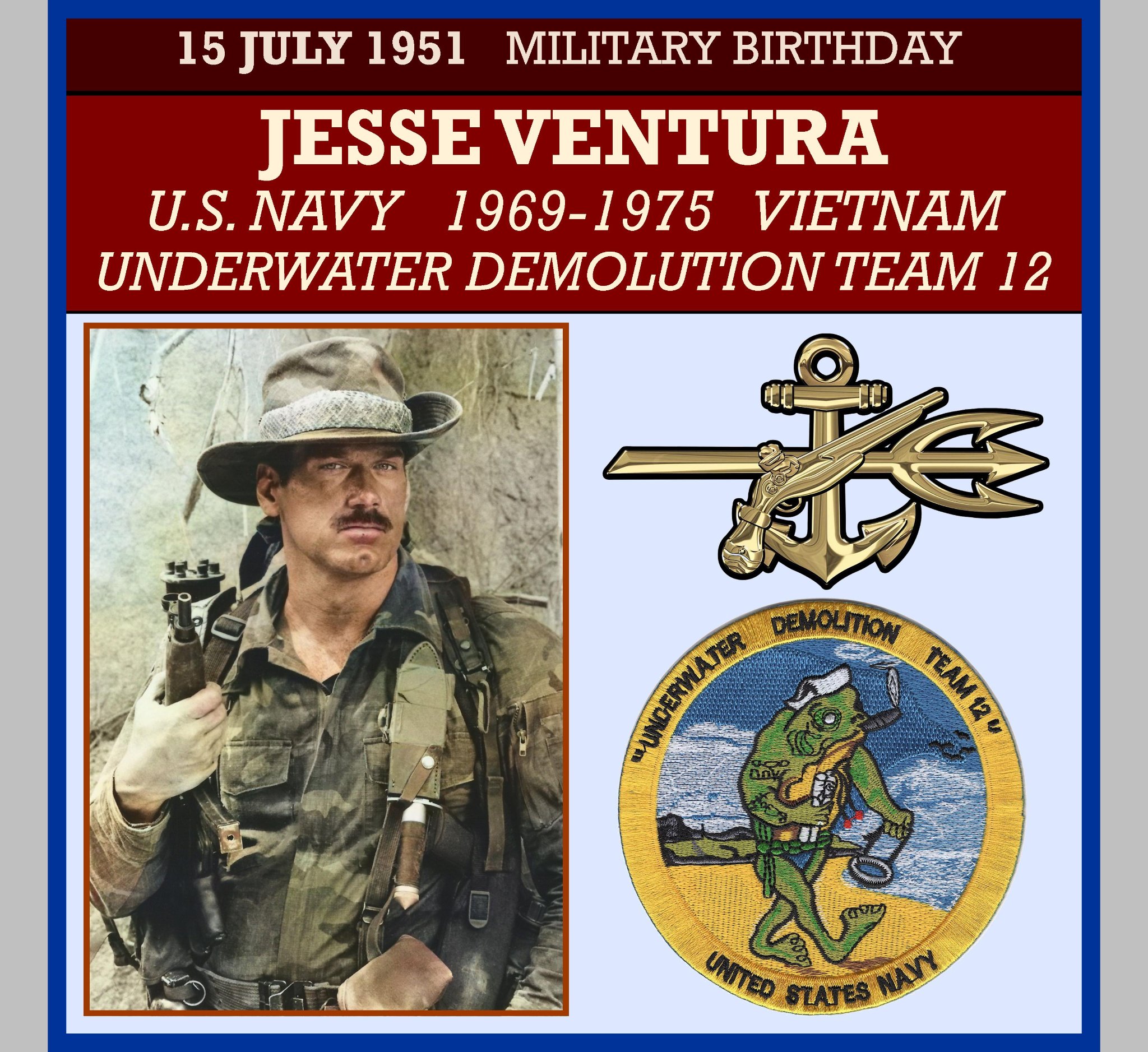 Ventura enlisted into the United States Navy after high school and served for six years — four on active duty, two in the Reserves — and is a Vietnam veteran. He joined the Underwater Demolition Team (UDT) after graduating from Basic Underwater Demolition/SEAL (BUD/S) school. Ventura frequently references his military service in public, and a lawyer from San Diego criticized him for faking his claims of being a SEAL. Although Ventura never completed the extra 26 weeks of training to become a SEAL, the UDTs were broken apart and combined with the SEAL teams after Vietnam. Ventura claims that UDTs simply refer to themselves as SEALs due to the restructuring. Despite his membership with Underwater Demolition Team 12, Ventura never saw combat during Vietnam although he did receive the Vietnam Service Medal.