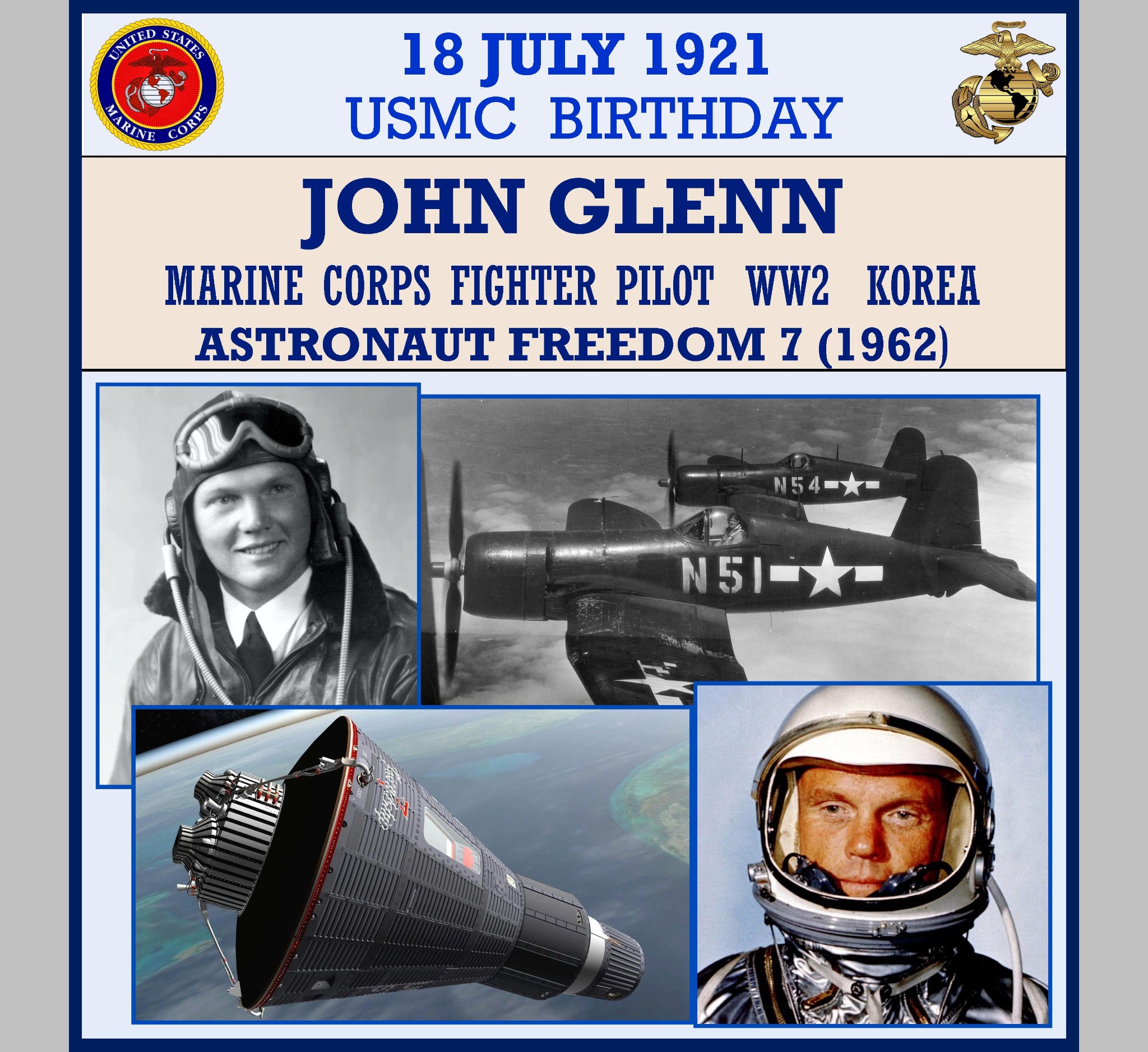 John Herschel Glenn Jr. (July 18, 1921 â December 8, 2016) was an American aviator in the United States Marine Corps, engineer, astronaut, businessman, and politician. He was the third American in space, and the first American to orbit the Earth, circling it three times in 1962. Following his retirement from NASA, he served from 1974 to 1999 as a Democratic United States Senator from Ohio; in 1998, he flew into space again at age 77.