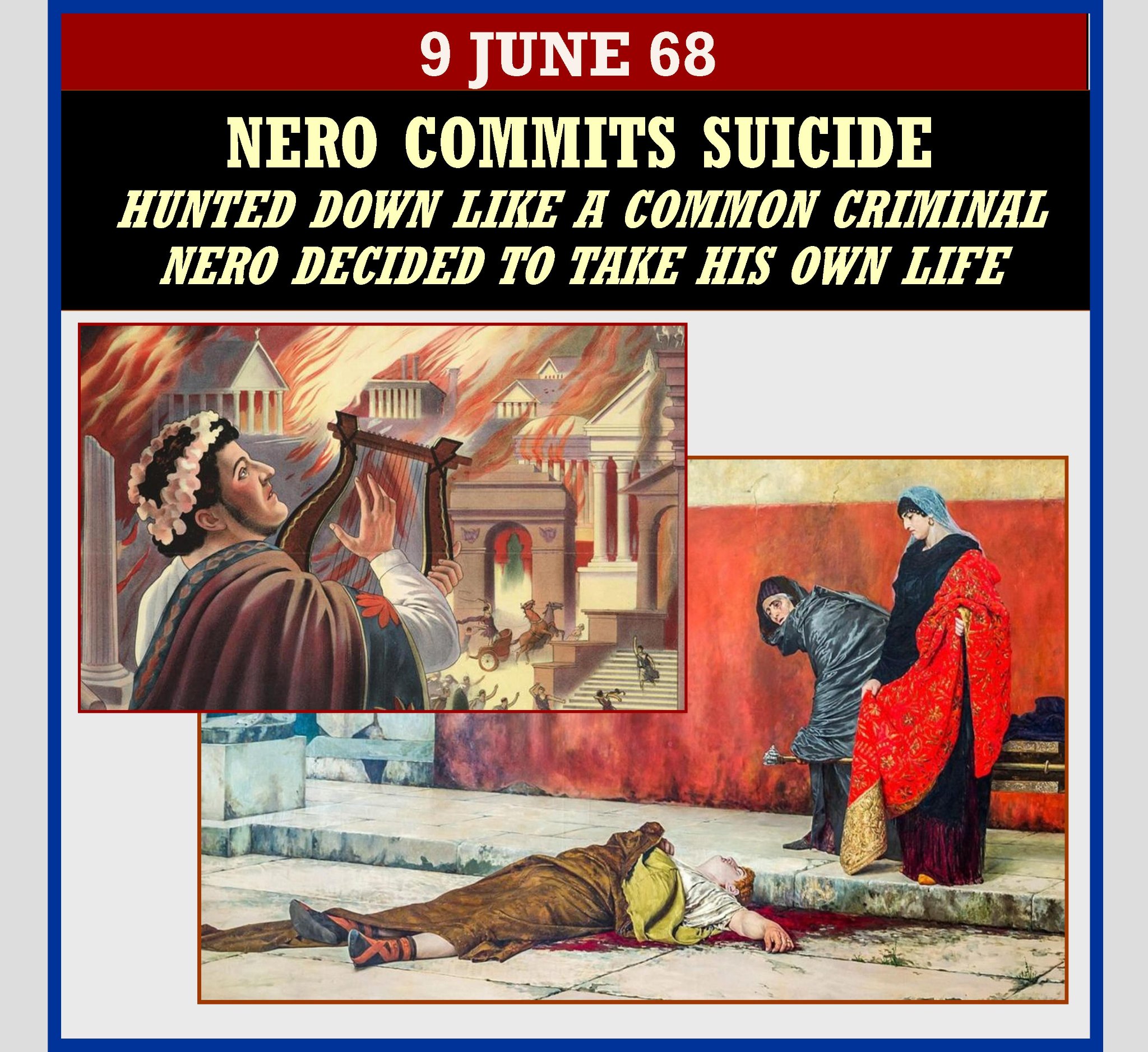 June 9, 68 CE, Nero, perhaps the most infamous emperor of Rome, committed suicide after thirteen years of tyrannical rule.