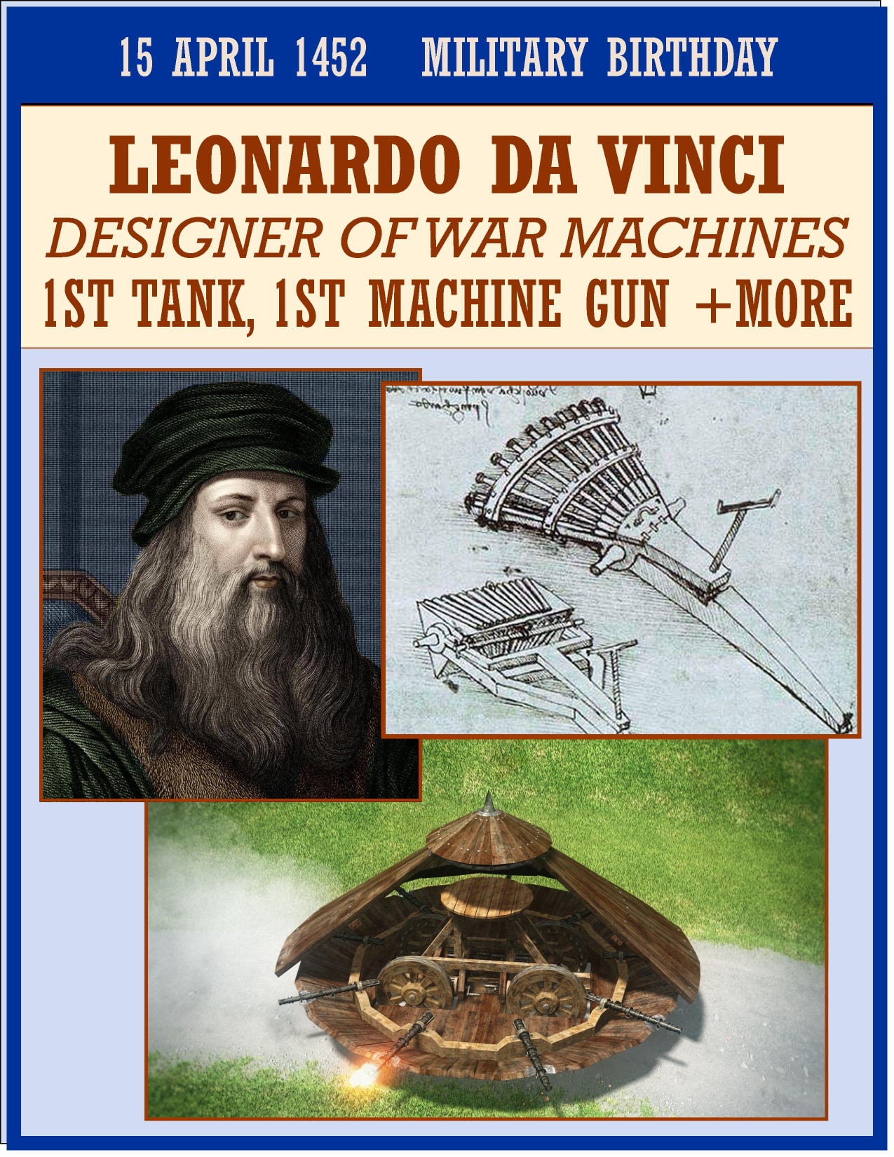 Unfortunately for Leonardo he often had to pander to the levels of his bloodthirsty and power hungry patrons in order to receive work (although Leonardo was famous even during his own lifetime, he was by no means a wealthy man, he also had several apprentices to feed and clothe later on in is life), this would sometimes mean using his outstanding intellect to design machines capable of inflicting damage upon many men .