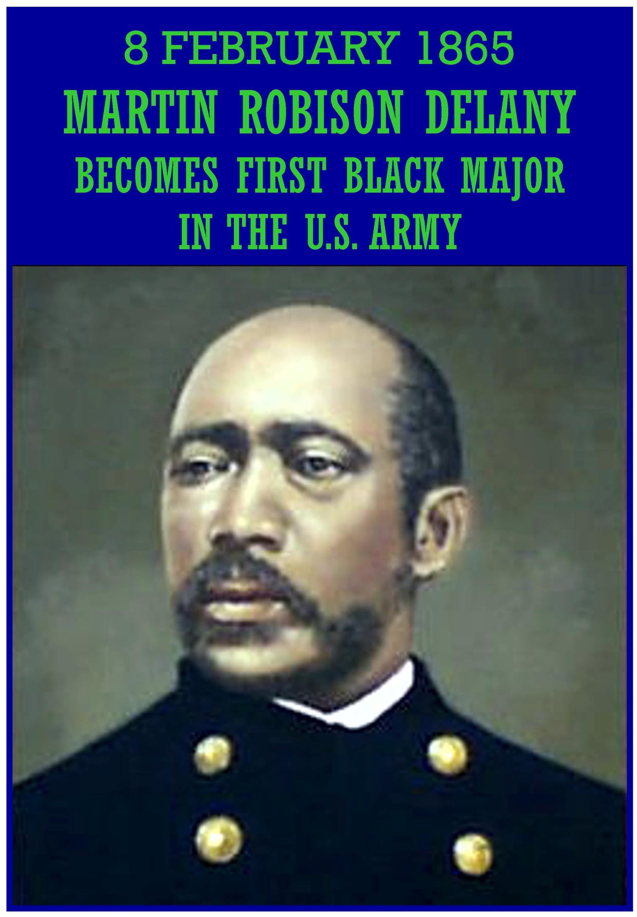 Martin Robison Delany (May 6, 1812 â January 24, 1885) was an African-American abolitionist, journalist, physician, soldier, and writer, and arguably the first proponent of black nationalism. Delany is credited with the Pan-African slogan of “Africa for Africans.” Born as a free person of color in Charles Town, Virginia, now West Virginia (not Charleston, West Virginia) and raised in Chambersburg and Pittsburgh, Pennsylvania, Delany trained as a physician’s assistant.