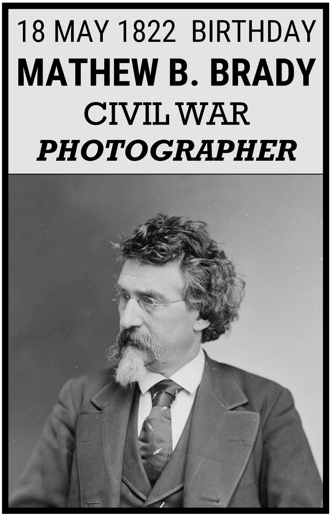 Mathew B. Brady (May 18, 1822 â January 15, 1896) was one of the earliest photographers in American history. Best known for his scenes of the Civil War, he studied under inventor Samuel F. B. Morse, who pioneered the daguerreotype technique in America. Brady opened his own studio in New York in 1844, and photographed Andrew Jackson, John Quincy Adams, and Abraham Lincoln, among other public figures. When the Civil War started, his use of a mobile studio and darkroom enabled vivid battlefield photographs that brought home the reality of war to the public. Thousands of war scenes were captured, as well as portraits of generals and politicians on both sides of the conflict, though most of these were taken by his assistants, rather than by Brady himself. After the war, these pictures went out of fashion, and the government did not purchase the master-copies as he had anticipated. Brady’s fortunes declined sharply, and he died in debt.