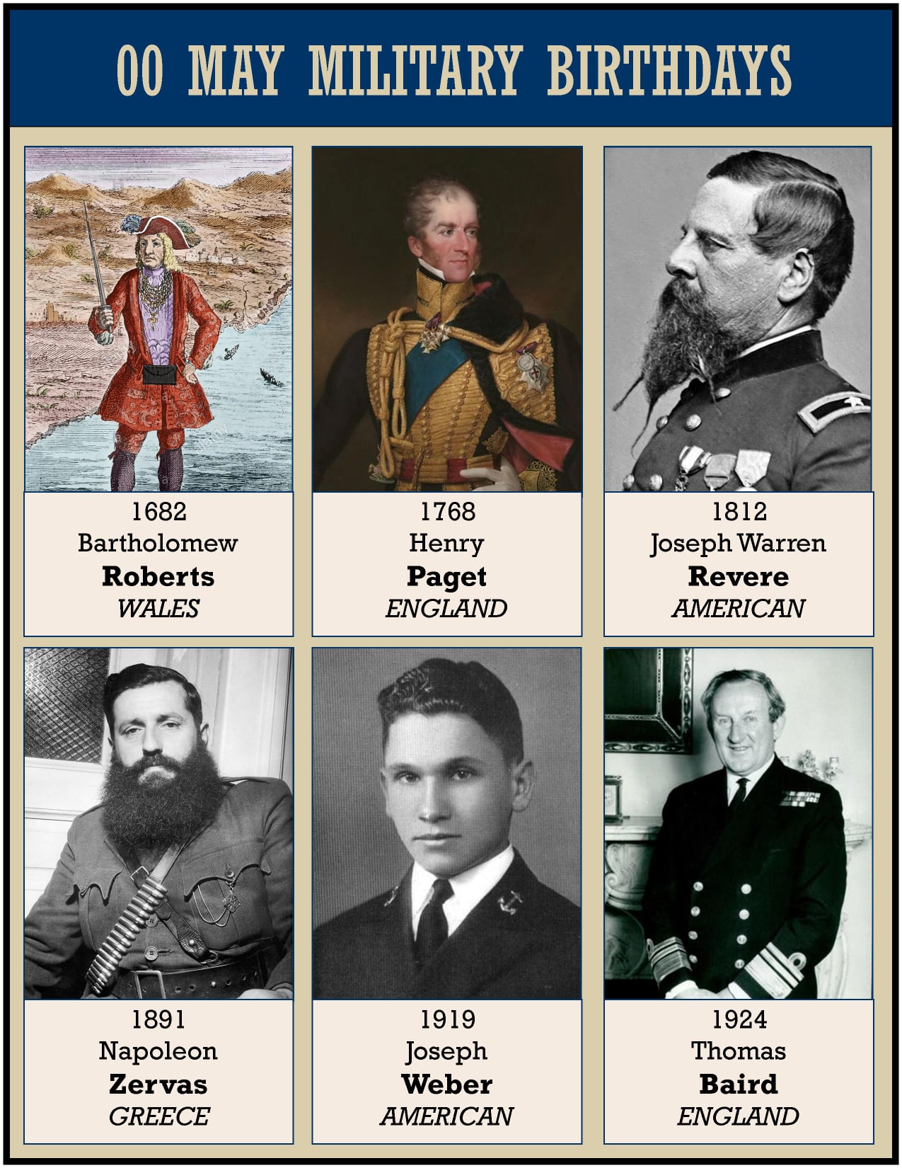 1812 Joseph Warren Revere (May 17, 1812 â April 20, 1880) was a career United States Navy and Army officer. Also serving in the Mexican Army, the grandson of Paul Revere is best known for being a Union Brigadier General during the American Civil War who was court-martialed after the Battle of Chancellorsville.