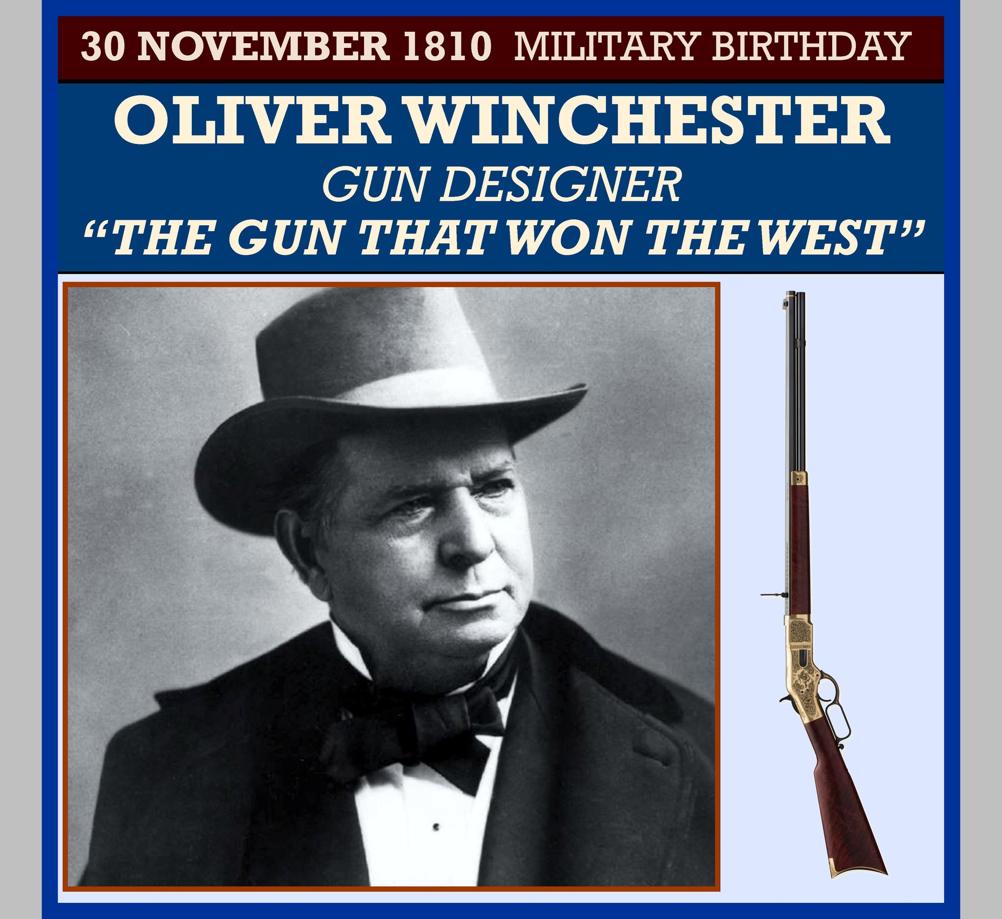 Oliver Fisher Winchester (November 30, 1810 â December 10, 1880) was an American businessman and politician, best known as being the founder of the Winchester Repeating Arms Company.
