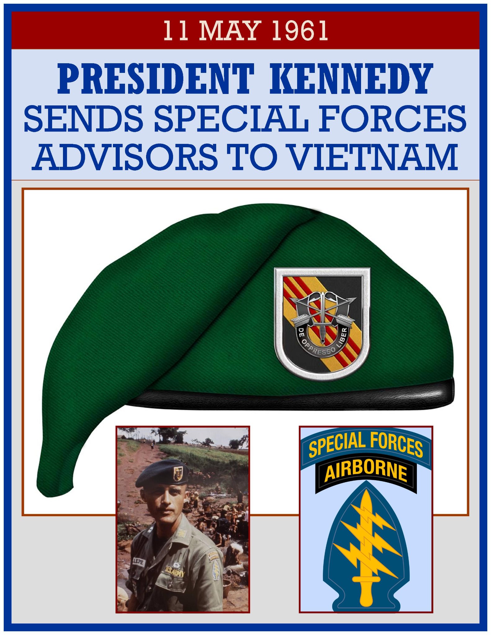 On 11 May 1961, President Kennedy sent 400 Green Beret “Special Advisors” to Vietnam to train the South Vietnamese in counter-insurgency warfare. Up until this time, the South Vietnamese and the US had placed the onus of their activity in countering the insurgency by beefing up and training the conventional South Vietnamese forces. However, this excluded large numbers of the ethnic and religious minorities of the country.