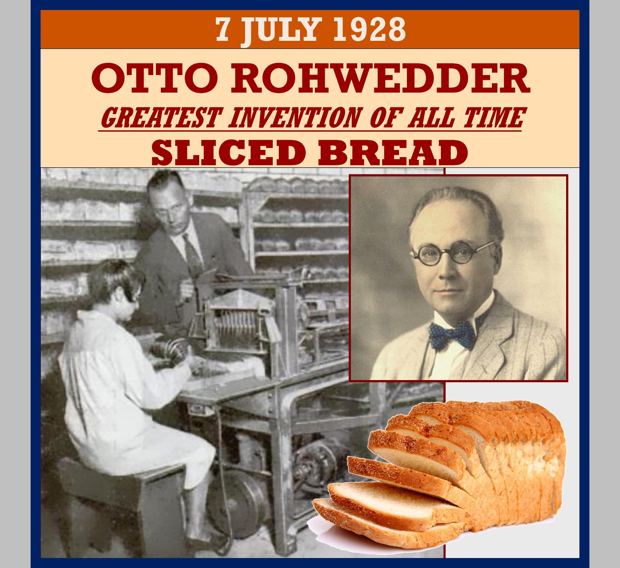 On 7 July 1928, a full-page newspaper ad announced the first presliced loaf of bread. It included instructions: 1) âOpen wrapper at one endâ; 2) âPull out pinâ; 3) âRemove as many slices as desired.â At the time, as everyone knew, cut bread quickly went stale. Anticipating consumersâ fears, Otto Rohwedder, a Missouri-based inventor, inserted a U-shaped pin at both ends of his presliced loaf to hold the bread together inside the resealable bag, creating an illusion of wholeness that signified freshness.