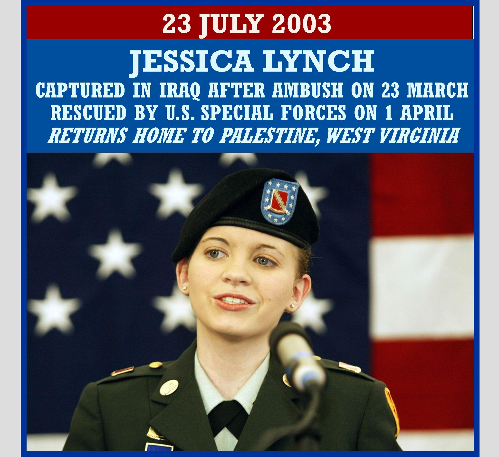 Lynch, who was born April 26, 1983, was part of the 507th Ordnance Maintenance Company from Fort Bliss, Texas. On March 23, 2003, just days after the U.S. invaded Iraq, Lynch was riding in a supply convoy when her unit took a wrong turn and was ambushed by Iraqi forces near Nasiriya. Eleven American soldiers died and four others besides Lynch were captured.