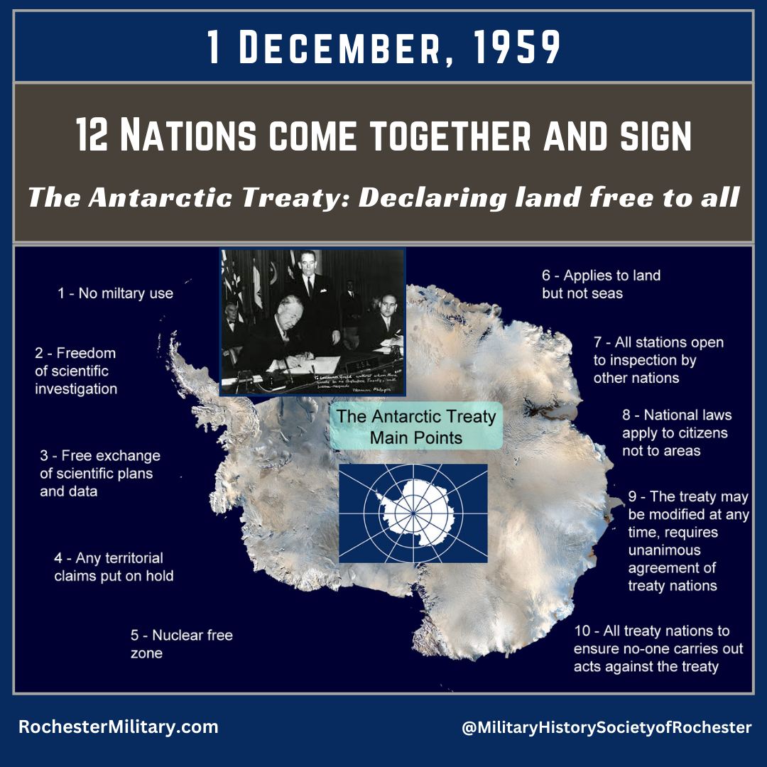 #OnThisDay 1 December 1959, Twelve nations, including the United States and the Soviet Union, signed the Antarctica Treaty, which banned military activity and weapons testing on the continent. It was the first arms control agreement signed in the Cold War period.
