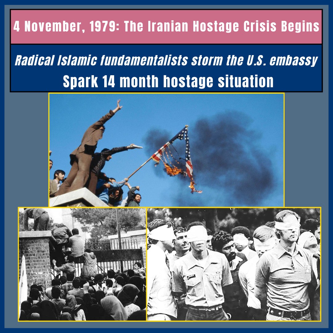 #OnThisDay, 4 November 1979, student followers of Ayatollah Khomeini sent shock waves across America when they stormed the U.S. embassy in Tehran and took 90 hostages. The students were enraged that the deposed Shah had been allowed to enter the United States for medical treatment and they threatened to murder hostages if any rescue was attempted. Days later, Iranâs provincial leader resigned, and Ayatollah Khomeini, the leader of Iranâs fundamentalist revolutionaries, took full control of the countryâand the fate of the hostages.