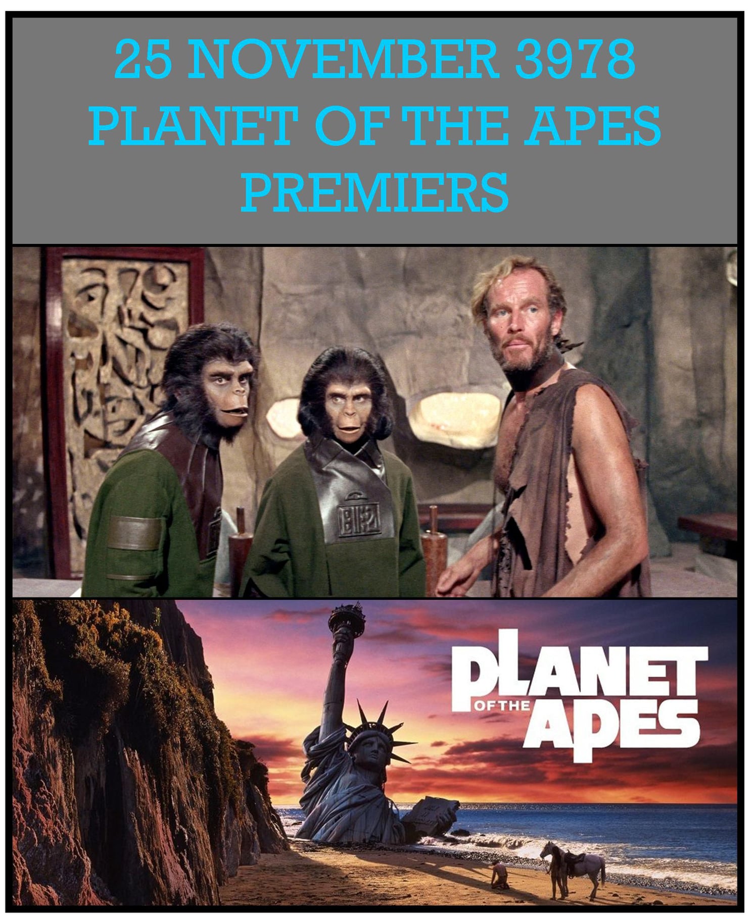 Planet of the Apes November 25, 3978 The astronauts land on a mysterious planet ruled by apes – The calendar on their spacecraft, as seen in the movie read November 25, 3978 in the 1968 movie Planet of the Apes. rochestermilitary.com