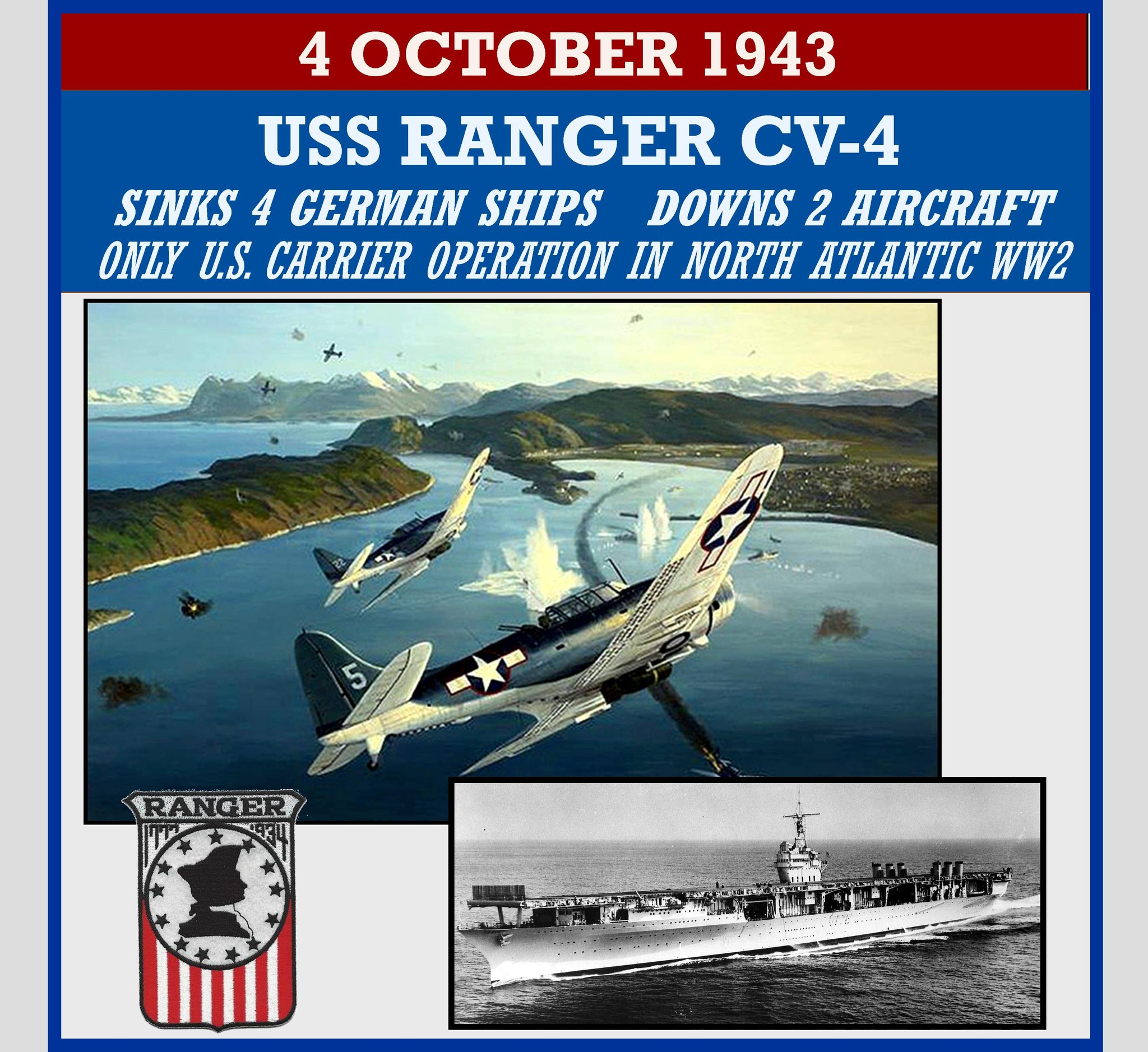 Avoiding detection, Ranger began launching aircraft on October 4. Striking a short time later, the aircraft sank two merchant vessels in Bodo roadstead and damaged several more. Though located by three German aircraft, the carrier’s combat air patrol downed two and chased off the third. A second strike succeeded in sinking a freighter and a smaller coastal vessel. Returning to Scapa Flow, Ranger commenced patrols to Iceland with the British Second Battle Squadron. These continued until late November when the carrier detached and sailed for Boston, MA.